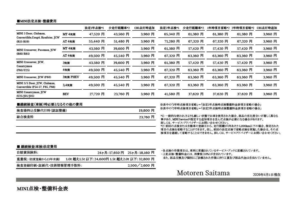 ※点検整備料金表の詳細については、サービス・アドバイザーにお問い合わせください。